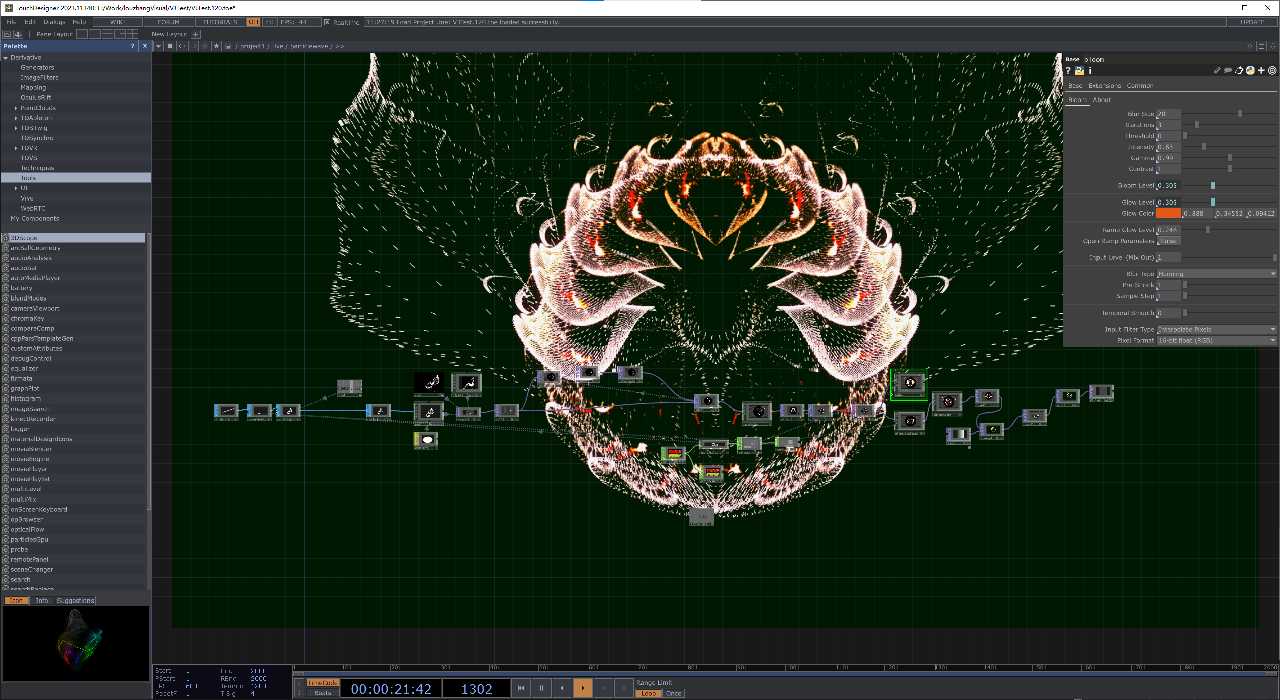 I did an audio-reactive practice piece in Touchdesigner, basically using particles, mirror and bloom nodes to make this cool effect.